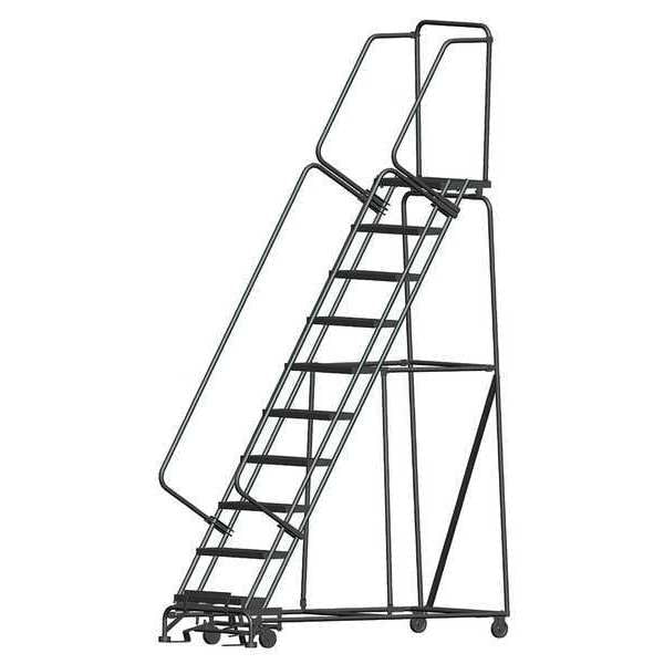 133 in H Steel Rolling Ladder, 10 StepsSKU G9845692Categories Material HandlingDescription Rolling Ladder, Material Steel, Platform Height 100 in, Handrails Included Yes, Handrail Height 30 in, Overall Height 133 in, Number of Steps 10, Unassembled, Load Capacity 450 lb, Step Tread Expanded Metal, Platform Depth 14 in, Platform Width 24 in, Bottom Width 32 in, Base Depth 74 in, Overall Width 32 in, Climbing Angle 59 Degrees , Step Depth 7 in, Step Width 24 in, Ladder Actuation Weight Activated Step Lock, Finish Powder Coated, Color Gray, Standards ANSI, OSHAgraingerSKU: 8TRP5, mscSKU: , zoro_no: G9845692, mongo_id: 65bbea4a22d7a989a99a61cb
