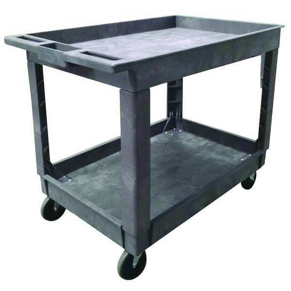 Plastic Utility Cart with Deep Lipped Plastic Shelves, Flat, 2 Shelves, 500 lbSKU G3415614Categories Material HandlingDescription Utility Cart with Deep Lipped Plastic Shelves, Number of Shelves 2, Lip Style 4-Sided Lipped, Load Capacity 500 lb, Shelf Length 37 in, Shelf Width 25 5/8 in, Top Shelf Height 33 in, Distance Between Shelves 19 in, Handle Type Flat, Handle Height 33 in, Caster Wheel/Tread Material Polypropylene, Caster/Wheel Configuration (2) Rigid, (2) Swivel, Lip Height 4 in$281.24 / eachWeb price -