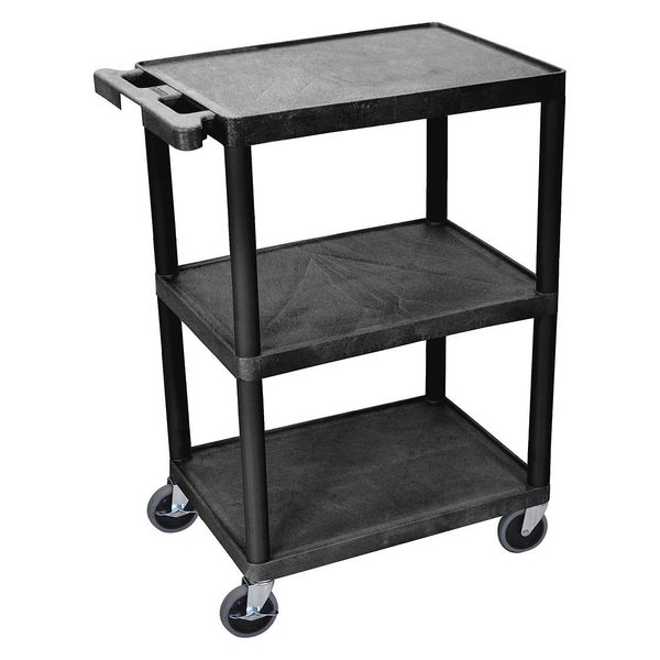 Thermoplastic Resin Utility Cart with Lipped Plastic Shelves, Flat, 3 Shelves, 300 lb