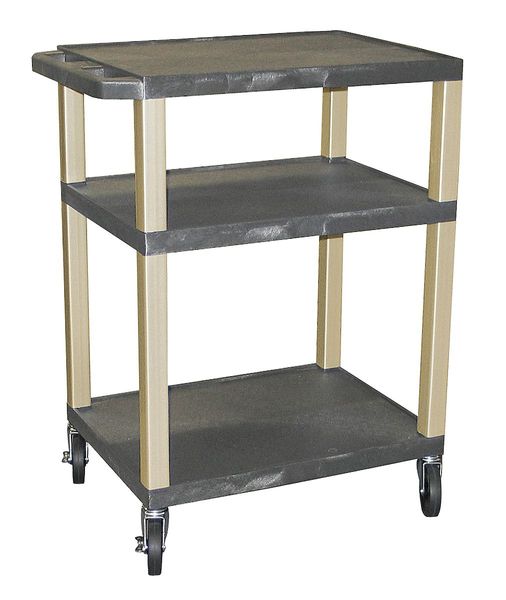 Thermoplastic Resin Utility Cart with Lipped Plastic Shelves, Flat, 3 Shelves, 300 lbSKU G7683146Categories Material HandlingDescription Utility Cart with Lipped Plastic Shelves, Number of Shelves 3, Lip Style 4-Sided Lipped, Load Capacity 300 lb, Shelf Length 24 in, Shelf Width 18 in, Top Shelf Height 34 in, Distance Between Shelves 9 1/2 in, 16 1/2 in, Distance Between Top and Middle Shelf 9 1/2 in, Distance Between Middle and Bottom Shelf 16 1/2 in, Handle Type Flat, Handle Height 34 in, Caster Brake Type Side Pedal Brake, Caster Wheel/Tread Material Thermoplastic Rubber, Caster Wheel Dia. 4 in$159.74 / eachWeb price -