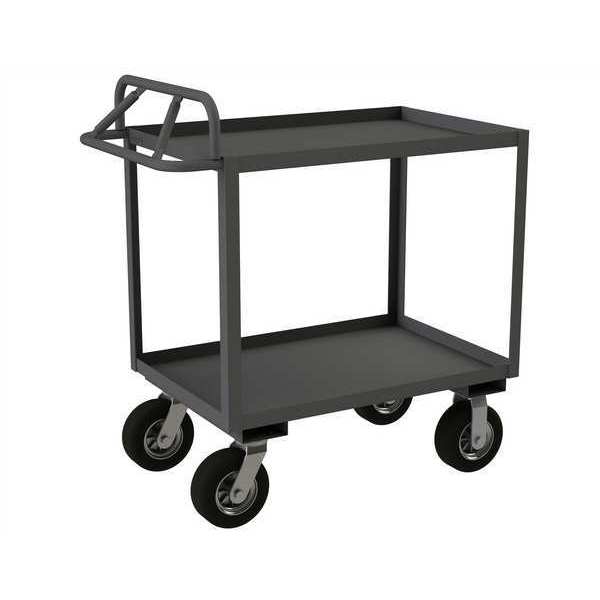Steel Utility Cart with Lipped Metal Shelves, Ergonomic, 2 Shelves, 1,200 lbSKU G2148846Categories Material HandlingDescription Utility Cart with Lipped Metal Shelves, Load Capacity 1,200 lb, Steel Material, 14 ga Gauge, Powder Coated Finish, Gray Color, Overall Length 54 1/2 in, Overall Width 24 1/2 in, Number of Shelves 2, Capacity per Shelf 600 lb, Distance Between Shelves 26 3/4 in, Shelf Length 36 in, Shelf Width 24 in, Handle Height 43 5/8 in, Top Shelf Height 43 3/4 in, Assembled/Unassembled AssembledgraingerSKU: 49Y185, mscSKU: , zoro_no: G2148846, mongo_id: 65bbe9c522d7a989a9977f5e