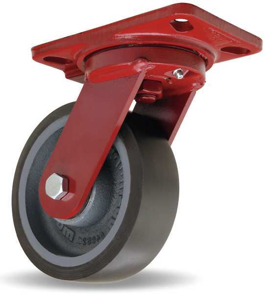 ForgeMaster Swivel Caster, 6" x 3" Duralast XC Polyurethane (70D) on Cast Iron Wheel