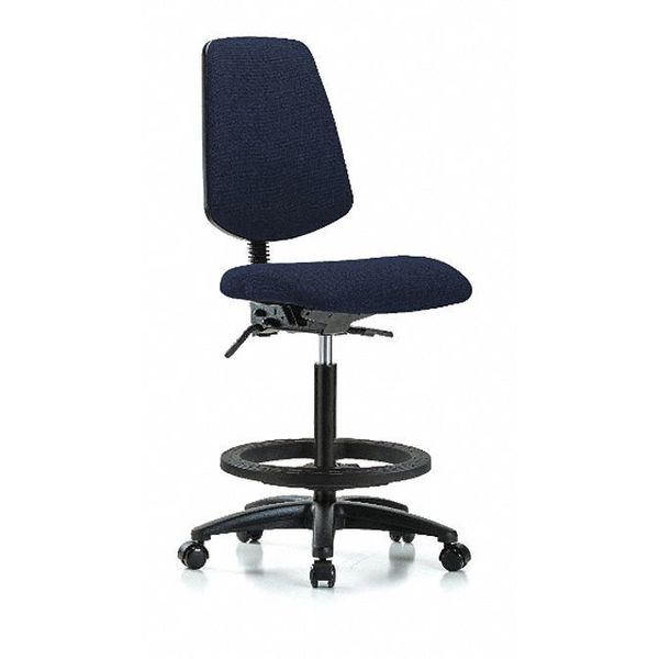 Fab Hi Bench Chair, Med, Bk, BF, Cast, Navy, Caster Type: Rolling