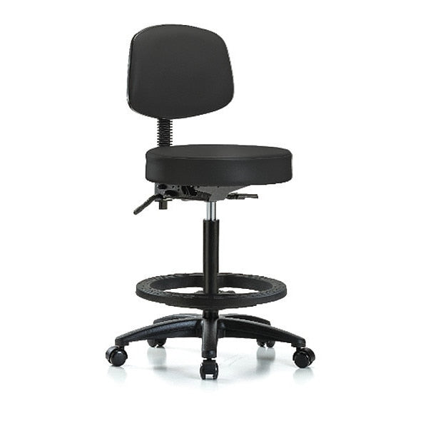 Bench Stool, Hi, Vinyl, Bk, BF, Casters, BLK
