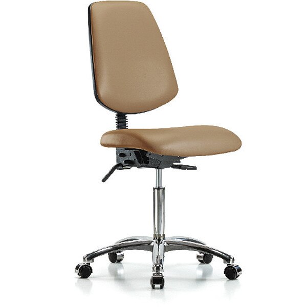 Bench Chair, Vinyl, Med, Bk, Cast, Taupe, Caster Type: Rolling