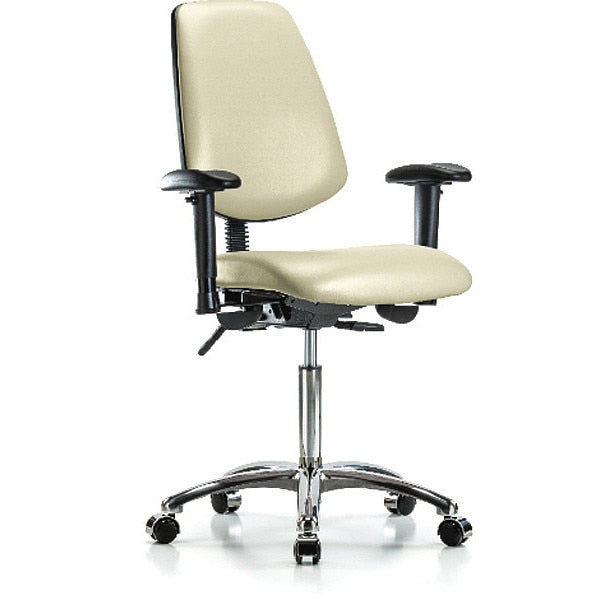 Bench Chair, Vinyl, Med, Bk, CF, Cast, Wht, Caster Type: Rolling
