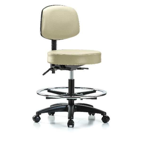 Bench Stool, Med, Vinyl, Bk, CF, Casters, Wht