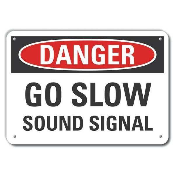 SKU G9338747Categories Material Handling , SafetyDescription Reflective Lift Truck Traffic Danger Sign, Horizontal Rectangle, Number of Printed Sides 1, English, Sign Format Traditional OSHA, Sign Legend Go Slow Sound Signal, Sign Legend Background Color White, Sign Legend Style TextgraingerSKU: 63KG51, mscSKU: , zoro_no: G9338747, mongo_id: 65bbe9d322d7a989a997d447
