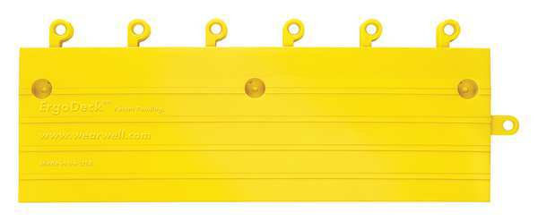 Ramp Edge PVC 18 in 18 in 7/8 inSKU G0890312Categories Material HandlingDescription Ramp Edge, Anti-Slip Backing Yes, Anti-Slip Surface Yes, Antifatigue Material No, DOC FF1-70 Rating Yes, NFSI High Traction Certified Yes, Recycled Content 80 Percent, NSF/ANSI 52 No, Antimicrobial No, Autoclavable No, Backing Characteristics Solid with Ridges, Surface Texture Raised Pattern, USDA Certified No, X-Ray Detectable No, Washdown Safe Yes, Color Yellow, Connection Style Peg and Hole, Edge Gender Female, Edge Style Beveled, Length 18 in, Material PVC, Mat Product Type Ramp EdgegraingerSKU: 2RPR7, mscSKU: , zoro_no: G0890312, mongo_id: 65bbe9b522d7a989a9970215