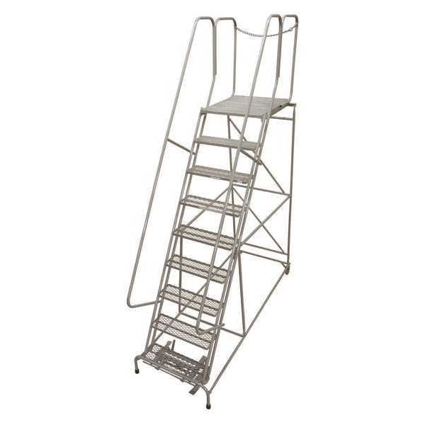 140 in H Steel Rolling Ladder, 11 StepsSKU G3491181Categories Material HandlingDescription Rolling Ladder, Material Steel, Platform Height 110 in, Handrails Included Yes, Handrail Height 30 in, Overall Height 140 in, Number of Steps 11, Unassembled, Load Capacity 450 lb, Step Tread Antislip Vinyl, Platform Depth 10 in, Platform Width 24 in, Bottom Width 32 in, Base Depth 156 in, Overall Width 32 in, Climbing Angle 59 Degrees , Step Depth 7 in, Step Width 24 in, Ladder Actuation Foot Activated Step Lock, Finish Powder Coated, Color Gray, Standards ANSI, OSHA, Rear Exit NograingerSKU: 21UX98, mscSKU: , zoro_no: G3491181, mongo_id: 65bbe98822d7a989a995e57d