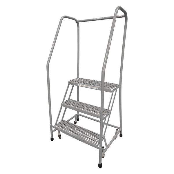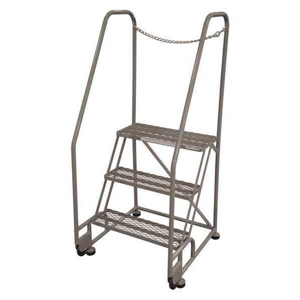 60 in H Steel Tilt and Roll Ladder, 3 StepsSKU G9826187Categories Material HandlingDescription Tilt and Roll Ladder, Material Steel, Platform Height 30 in, Handrails Included Yes, Handrail Height 30 in, Overall Height 60 in, Number of Steps 3, Assembled, Load Capacity 450 lb, Step Tread Expanded Metal, Platform Depth 20 in, Platform Width 24 in, Bottom Width 28 in, Base Depth 41 in, Overall Width 28 in, Climbing Angle 59 Degrees , Step Depth 7 in, Step Width 24 in, Ladder Actuation None, Finish Powder Coated, Color Gray, Standards ANSI, OSHA, Includes 2-1/2 in Rubber Pads, Rear Exit NograingerSKU: 20Z358, mscSKU: , zoro_no: G9826187, mongo_id: 65bbe98822d7a989a995e54b