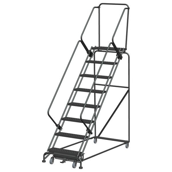 SKU G9840914Categories Material HandlingDescription Rolling Ladder, Material Steel, Platform Height 80 in, Handrails Included Yes, Handrail Height 30 in, Overall Height 113 in, Number of Steps 8, Unassembled, Load Capacity 450 lb, Step Tread Serrated, Platform Depth 28 in, Platform Width 24 in, Bottom Width 32 in, Base Depth 75 in, Overall Width 32 in, Climbing Angle 59 Degrees , Step Depth 7 in, Step Width 24 in, Ladder Actuation Foot Activated Step Lock, Finish Powder Coated, Color Gray, Standards ANSI, OSHAgraingerSKU: 9EXD3, mscSKU: , zoro_no: G9840914, mongo_id: 65bbe9f322d7a989a99897b2