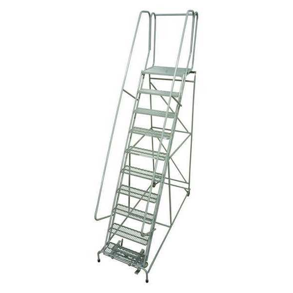 130 in H Steel Rolling Ladder, 10 StepsSKU G9929412Categories Material HandlingDescription Rolling Ladder, Material Steel, Platform Height 100 in, Handrails Included Yes, Handrail Height 30 in, Overall Height 130 in, Number of Steps 10, Assembled, Load Capacity 450 lb, Step Tread Serrated, Platform Depth 30 in, Platform Width 24 in, Bottom Width 32 in, Base Depth 92 in, Overall Width 32 in, Climbing Angle 59 Degrees , Step Depth 7 in, Step Width 24 in, Ladder Actuation Foot Activated Step Lock, Finish Powder Coated, Color Gray, Standards ANSI, OSHA, Includes 1 in Crutch TipsgraingerSKU: 20Z440, mscSKU: , zoro_no: G9929412, mongo_id: 65bbe9f322d7a989a99897d8