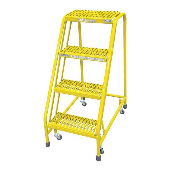 40 in H Steel Rolling Ladder, 4 StepsSKU G0995447Categories Material HandlingDescription Rolling Ladder, Material Steel, Platform Height 40 in, Handrails Included No, Overall Height 40 in, Number of Steps 4, Assembled, Load Capacity 450 lb, Step Tread Serrated, Platform Depth 10 in, Platform Width 16 in, Bottom Width 20 in, Base Depth 31 in, Overall Width 20 in, Climbing Angle 59 Degrees , Step Depth 7 in, Step Width 16 in, Ladder Actuation Weight Activated Step Lock, Finish Powder Coated, Color Yellow, Standards ANSI, OSHA, Rear Exit NograingerSKU: 21UP75, mscSKU: , zoro_no: G0995447, mongo_id: 65bbe9f322d7a989a99897fb