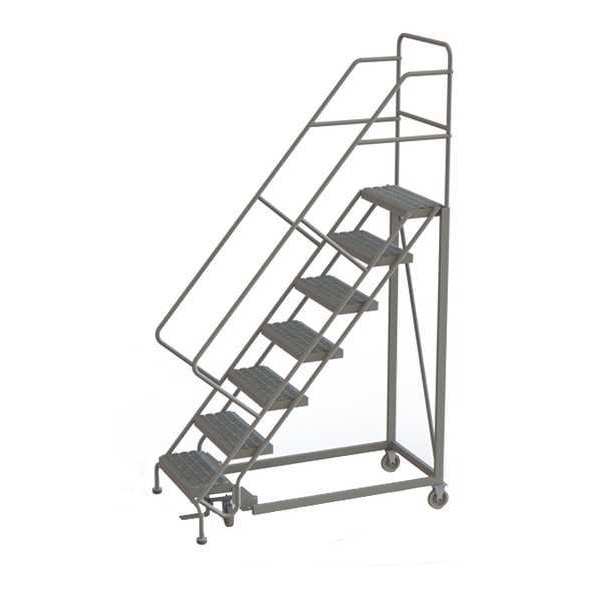 106 in H Steel Rolling Ladder, 7 StepsSKU G0978306Categories Material HandlingDescription Rolling Ladder, Material Steel, Platform Height 70 in, Handrails Included Yes, Handrail Height 36 in, Overall Height 106 in, Number of Steps 7, Unassembled, Load Capacity 450 lb, Step Tread Perforated, Platform Depth 17 in, Platform Width 24 in, Bottom Width 35 in, Base Depth 74 in, Overall Width 35 in, Climbing Angle 50 Degrees , Step Depth 8 1/2 in, Step Width 24 in, Ladder Actuation Foot Activated Step Lock, Finish Powder Coated, Color Gray, Standards ANSI, OSHA, Includes 2-1/2 in Rubber PadsgraingerSKU: 25NV46, mscSKU: , zoro_no: G0978306, mongo_id: 65bbe9f322d7a989a9989799
