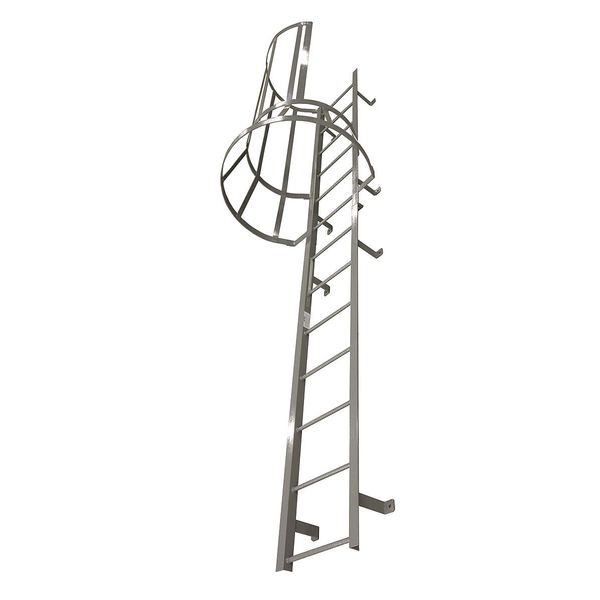13 ft 3 in Fixed Ladder with Safety Cage, Steel, 14 Steps, Right Exit, Powder Coated FinishSKU G9856122Categories Material HandlingDescription Fixed Ladder with Safety Cage, Walk-Thru Included No, Exit Right, Overall Height 13 ft 3 in, Overall Width 26 in, Material Steel, Load Capacity 300 lb, Number of Steps 14, Top Step Height 13 ft, Rung Dia. 3/4 in, Rung/Step Spacing 12 in, Step Width 16 in, Finish Gray Powder Coated, Standards OSHA and ANSIgraingerSKU: 6MXP9, mscSKU: , zoro_no: G9856122, mongo_id: 65bbe9f322d7a989a99897c7
