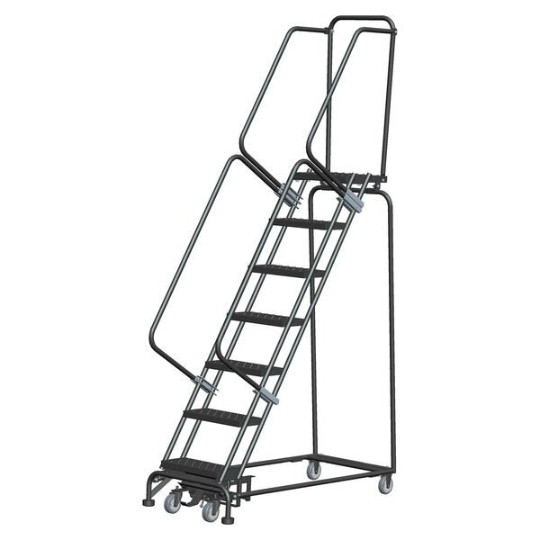 100 in H Steel Rolling Ladder, 7 StepsSKU G9931117Categories Material HandlingDescription Rolling Ladder, Material Steel, Platform Height 70 in, Handrails Included Yes, Handrail Height 30 in, Overall Height 100 in, Number of Steps 7, Unassembled, Load Capacity 450 lb, Step Tread Perforated, Platform Depth 30 in, Platform Width 24 in, Bottom Width 30 in, Base Depth 73 in, Overall Width 30 in, Climbing Angle 59 Degrees , Step Depth 7 in, Step Width 24 in, Ladder Actuation Foot Activated Step Lock, Finish Powder Coated, Color Gray, Standards ANSI, OSHA, Includes 1 in Crutch TipsgraingerSKU: 20Z232, mscSKU: , zoro_no: G9931117, mongo_id: 65bbe9cb22d7a989a997b291