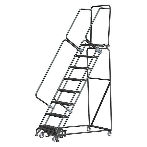 113 in H Steel Rolling Ladder, 8 StepsSKU G5207380Categories Material HandlingDescription Rolling Ladder, Material Steel, Platform Height 80 in, Handrails Included Yes, Handrail Height 30 in, Overall Height 113 in, Number of Steps 8, Assembled, Load Capacity 450 lb, Step Tread Perforated, Platform Depth 14 in, Platform Width 24 in, Bottom Width 32 in, Base Depth 61 in, Overall Width 32 in, Climbing Angle 59 Degrees , Step Depth 7 in, Step Width 24 in, Ladder Actuation Weight Activated Step Lock, Finish Powder Coated, Color Gray, Standards ANSI, OSHAgraingerSKU: 41LF65, mscSKU: , zoro_no: G5207380, mongo_id: 65bbe9cb22d7a989a997b26d