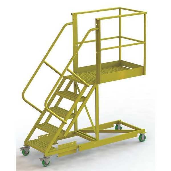 SKU G9958051Categories Material HandlingDescription Supported, Cantilever Rolling Ladder, Material Steel, Unassembled, Handrails Included Yes, Platform Height 50 in, Platform Width 24 in, Platform Depth 40 in, Overall Height 92 in, Load Capacity 300 lb, Handrail Height 42 in, Bottom Width 41 in, Base Depth 84 in, Number of Steps 5, Climbing Angle 50 Degrees , Ladder Actuation Locking Casters, Step Depth 8 1/2 in, Step Width 24 in, Step Tread Perforated, Finish Powder Coated, Color Yellow, Standards OSHA 1910.29 and ANSI A14.7graingerSKU: 15E968, mscSKU: , zoro_no: G9958051, mongo_id: 65bbe98022d7a989a995e519