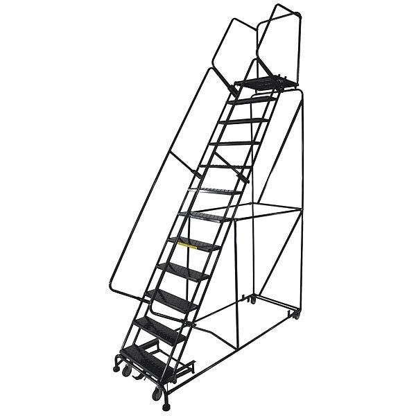 153 in H Steel Rolling Ladder, 12 StepsSKU G5206577Categories Material HandlingDescription Rolling Ladder, Material Steel, Platform Height 120 in, Handrails Included Yes, Handrail Height 30 in, Overall Height 153 in, Number of Steps 12, Unassembled, Load Capacity 450 lb, Step Tread Abrasive Mat, Platform Depth 21 in, Platform Width 24 in, Bottom Width 32 in, Base Depth 94 in, Overall Width 32 in, Climbing Angle 59 Degrees , Step Depth 7 in, Step Width 24 in, Ladder Actuation Weight Activated Step Lock, Finish Powder Coated, Color Gray, Standards ANSI, OSHAgraingerSKU: 41LG47, mscSKU: , zoro_no: G5206577, mongo_id: 65bbe9a522d7a989a996cc30