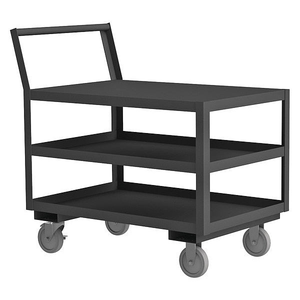 Steel Raised Handle Utility Cart, 3 Shelves, 2400 lbSKU G4147643Categories Material HandlingDescription Raised Handle Utility Cart, Load Capacity 2400 lb, Steel Material, 12 Gauge, Powder Coated Finish, Gray Color, Overall Length 42 in, Overall Width 25 in, Number of Shelves 3, Capacity per Shelf 800 lb, Distance Between Shelves 12 in, Shelf Length 36 in, Shelf Width 24 in, Top Shelf Height 39 in, Assembled/Unassembled AssembledgraingerSKU: , mscSKU: , zoro_no: G4147643, mongo_id: 65bbe95522d7a989a994cc7a
