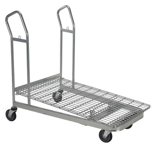Wire-Sided Platform Truck, 52 In. LSKU G5584871Categories Material HandlingDescription Platform Shopping Cart, Shopping Cart Style Nestable Platform without Basket, Load Capacity 90 lb, Basket Material Steel, Basket Finish/Coating Zinc Plated, Frame Material Steel, Frame Finish/Coating Zinc Plated, Caster/Wheel Configuration (4) Swivel, Color Silver, Overall Height 43 1/2 in, Overall Length 52 in, Overall Width 29 in, Basket Length 48 ingraingerSKU: , mscSKU: , zoro_no: G5584871, mongo_id: 65bbe97a22d7a989a995b23a