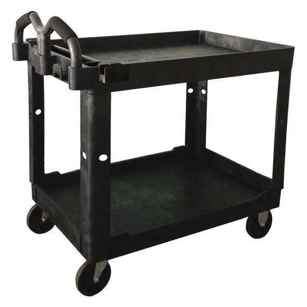 Polypropylene Utility Cart with Deep Lipped Plastic Shelves, Ergonomic, 2 Shelves, 500 lbSKU G8041796Categories Material HandlingDescription Utility Cart with Deep Lipped Plastic Shelves, Number of Shelves 2, Lip Style 4-Sided Lipped, Load Capacity 500 lb, Shelf Length 38 1/8 in, Shelf Width 24 1/4 in, Top Shelf Height 32 in, Distance Between Shelves 20 1/8 in, Handle Type Ergonomic, Handle Height 5 35/64 in, Caster Wheel/Tread Material Polypropylene, Caster Wheel Dia. 5 in, Lip Height 2 23/64 ingraingerSKU: , mscSKU: , zoro_no: G8041796, mongo_id: 65bbe92f22d7a989a993e6b4