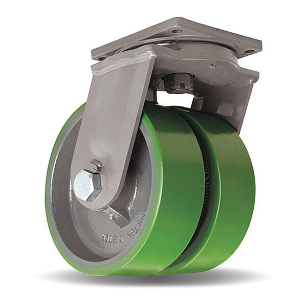 Maxi-Duty Dual-Wheel Swivel Caster, 12" x 4" Duralast Polyurethane on Cast Iron Wheel, Swivel Lock