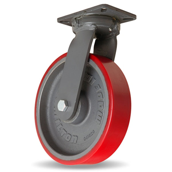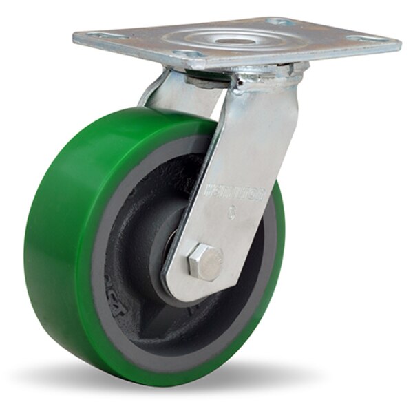 General Service Swivel Caster, 6" x 2" Duralast Polyurethane (95A) on Cast Iron Wheels