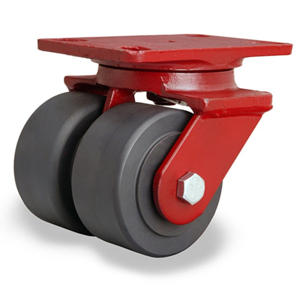 Extra Heavy Duty Dual-Wheel Swivel Caster, 6" x 3" Plastex Phenolic Wheels, 1" Straight Roller Bearing