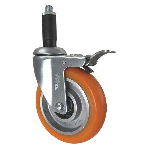 Swivel Stem Caster, w/Brake, Total Lock, 5", Wheel Width: 1-1/4"