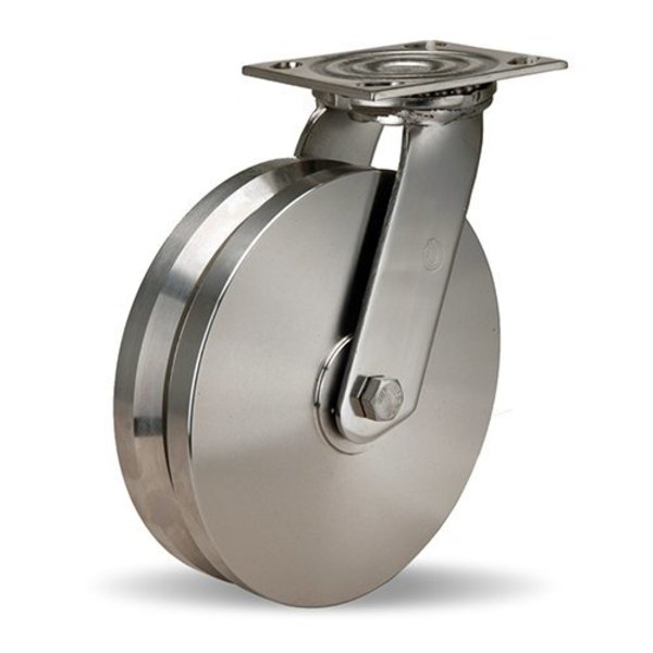 Stainless Steel Swivel Caster, 8" x 2" Stainless Steel V-Grooved Wheel