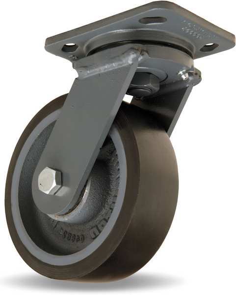 Super Endurance Swivel Caster, 6" x 3" Ergo-Glide Polyurethane (85A) on Cast Iron Wheel