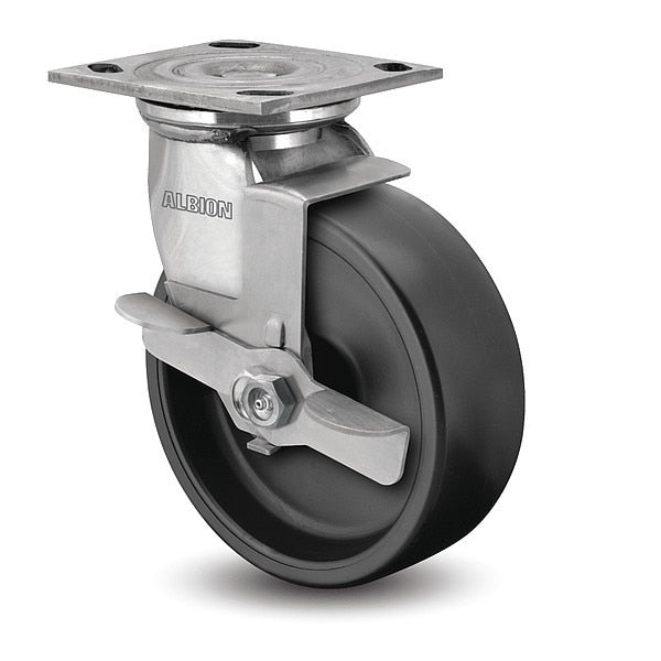 5" X 2" Non-Marking Polypropylene Swivel Caster, Face Brake, Loads Up To 550 lb