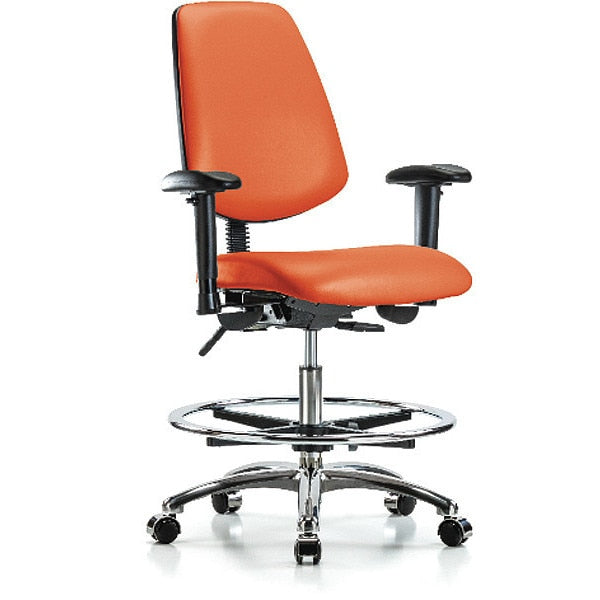 Bench Chair, Vinyl, Med, Bk, Cast, Org, Caster Type: Rolling