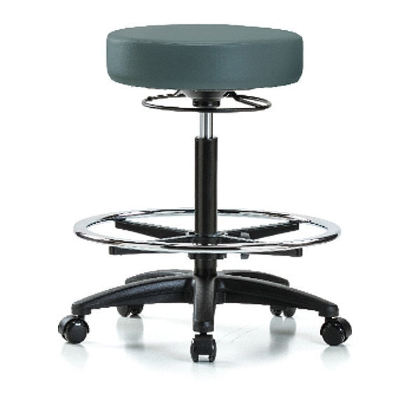 Bench Stool, Hi, Vinyl, CF, Casters, Blu
