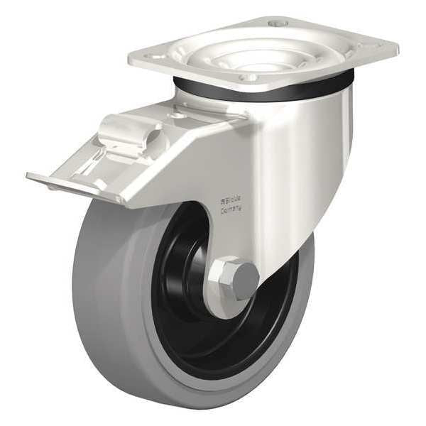 Swvl Plate Caster, Solid Rubr, 5", Brake