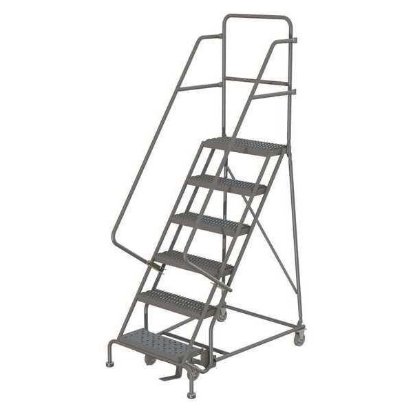 96 in H Steel Rolling Ladder, 6 StepsSKU G0979128Categories Material HandlingDescription Rolling Ladder, Material Steel, Platform Height 60 in, Handrails Included Yes, Handrail Height 36 in, Overall Height 96 in, Number of Steps 6, Unassembled, Load Capacity 450 lb, Step Tread Serrated, Platform Depth 10 in, Platform Width 16 in, Bottom Width 27 in, Base Depth 50 in, Overall Width 27 in, Climbing Angle 56 Degrees , Step Depth 7 in, Step Width 16 in, Ladder Actuation Foot Activated Step Lock, Finish Powder Coated, Color Gray, Standards ANSI, OSHA, Includes 2-1/2 in Rubber PadsgraingerSKU: 25NW60, mscSKU: , zoro_no: G0979128, mongo_id: 65bbe7183aaddbd5a9074a39