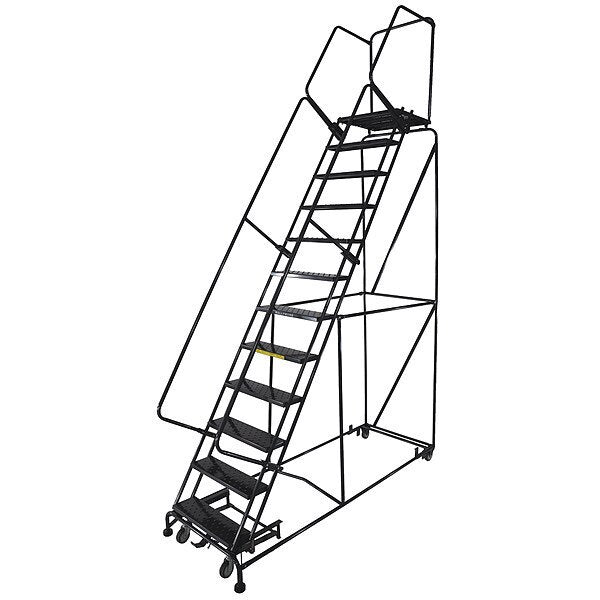 140 in H Steel Rolling Ladder, 11 StepsSKU G3491096Categories Material HandlingDescription Rolling Ladder, Material Steel, Platform Height 110 in, Handrails Included Yes, Handrail Height 30 in, Overall Height 140 in, Number of Steps 11, Unassembled, Load Capacity 450 lb, Step Tread Perforated, Platform Depth 20 in, Platform Width 24 in, Bottom Width 33 in, Base Depth 138 in, Overall Width 32 in, Climbing Angle 59 Degrees , Step Depth 7 in, Step Width 24 in, Ladder Actuation Foot Activated Step Lock, Finish Powder Coated, Color Yellow, Standards ANSI, OSHA, Rear Exit NograingerSKU: 21UY08, mscSKU: , zoro_no: G3491096, mongo_id: 65bbe7183aaddbd5a9074a51