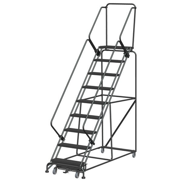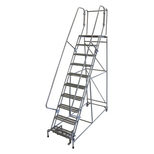 130 in H Steel Rolling Ladder, 10 StepsSKU G2155837Categories Material HandlingDescription Rolling Ladder, Material Steel, Platform Height 100 in, Handrails Included Yes, Handrail Height 30 in, Overall Height 130 in, Number of Steps 10, Unassembled, Load Capacity 450 lb, Step Tread Antislip Vinyl, Platform Depth 20 in, Platform Width 24 in, Bottom Width 32 in, Base Depth 84 in, Overall Width 32 in, Climbing Angle 59 Degrees , Step Depth 7 in, Step Width 24 in, Ladder Actuation Foot Activated Step Lock, Finish Powder Coated, Color Gray, Standards ANSI, OSHAgraingerSKU: 45CJ61, mscSKU: , zoro_no: G2155837, mongo_id: 65bbe7183aaddbd5a9074a75
