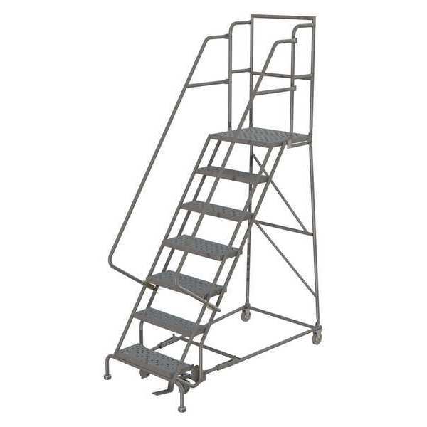 SKU G3489267Categories Material HandlingDescription Rolling Ladder, Material Steel, Platform Height 140 in, Handrails Included Yes, Handrail Height 42 in, Overall Height 182 in, Number of Steps 14, Unassembled, Load Capacity 450 lb, Step Tread Serrated, Platform Depth 24 in, Platform Width 30 in, Bottom Width 42 in, Base Depth 216 in, Overall Width 44 in, Climbing Angle 50 Degrees , Step Depth 7 in, Step Width 30 in, Ladder Actuation Foot Activated Step Lock, Finish Powder Coated, Color Gray, Standards ANSI, OSHA, Rear Exit NograingerSKU: 21UZ92, mscSKU: , zoro_no: G3489267, mongo_id: 65bbe7183aaddbd5a9074a55