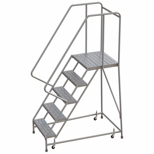 80 in H Steel Rolling Ladder, 5 StepsSKU G9930916Categories Material HandlingDescription Rolling Ladder, Material Steel, Platform Height 50 in, Handrails Included Yes, Handrail Height 30 in, Overall Height 80 in, Number of Steps 5, Unassembled, Load Capacity 450 lb, Step Tread Expanded Metal, Platform Depth 30 in, Platform Width 24 in, Bottom Width 30 in, Base Depth 60 in, Overall Width 30 in, Climbing Angle 59 Degrees , Step Depth 7 in, Step Width 24 in, Ladder Actuation Foot Activated Step Lock, Finish Powder Coated, Color Gray, Standards ANSI, OSHA, Includes 1 in Crutch TipsgraingerSKU: 20Z252, mscSKU: , zoro_no: G9930916, mongo_id: 65bbe7183aaddbd5a9074a67