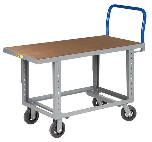 Work Height Platform Truck, 2000 lb.SKU G7077366Categories Material HandlingDescription Work-Height Wooden-Deck Platform Truck, Load Capacity 2,000 lb, Overall Height 48 in, Overall Length 50 in, Overall Width 30 in, Deck Construction Solid, Deck Material Wood, Deck Finish/Coating Powder Coated, Deck Gauge 12 ga, Deck Height 24 in to 34 in, Deck Length 48 in, Deck Width 30 in, Deck Surface Smooth, Frame Material Steel, Frame Finish/Coating Powder Coated, Handle Type Removable Raised, Lip Style 4-Sided Lipped, Side Panel Type No Side Panels, Number of Platforms 1, Color Blue, GraygraingerSKU: 49Y656, mscSKU: , zoro_no: G7077366, mongo_id: 65bbe7173aaddbd5a90744b9