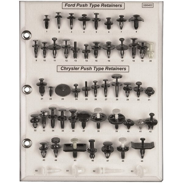 Screw/Push Ret Sample Board Ford, Chrysler Car/Truck