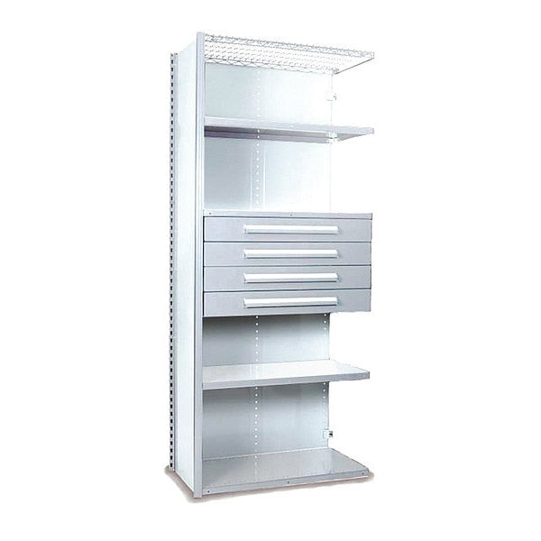 V-Grip Shelving W/ Drawers, WH, Finish: Enamel Paint
