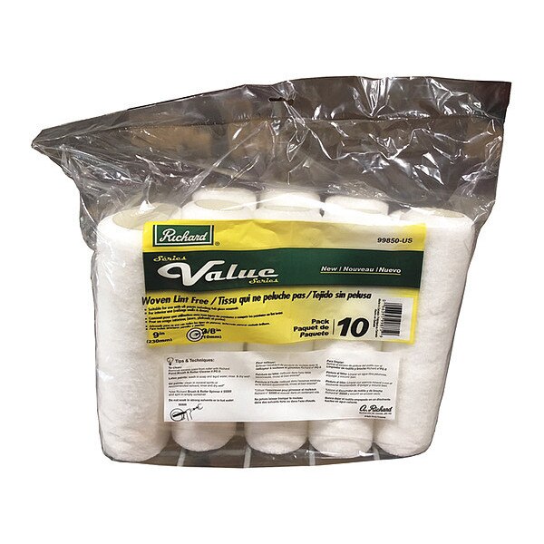 9" Paint Roller Cover, 3/8" Nap, Woven Fabric, 10 PK