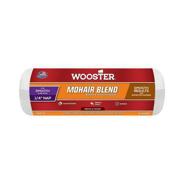 $9.19 / eachWeb price9" Paint Roller Cover, 1/4" Nap, Mohair/PolyesterSKU G0466971Categories Paint and Body EquipmentDescription Paint Roller Cover, Cover Type Standard, Surface Texture Smooth, Compatible Roller Frame Style Cage, 9 in Overall Length, 1/4 in Nap Size, Surface Material Brick, Concrete, Drywall, Masonry, Wood, Paint Type All Paints, Enamels, Epoxies, Floor Coatings, Urethanes, Core Diameter 1 1/2 in, Cover Material Mohair Fabric, Polyester, Core Material Polypropylene, For Use With 9 in W, Any 1 1/2 in dia Cage FramegraingerSKU: 38UX84, mscSKU: 55113468, zoro_no: G0466971, mongo_id: 65bbe7143aaddbd5a90733e0