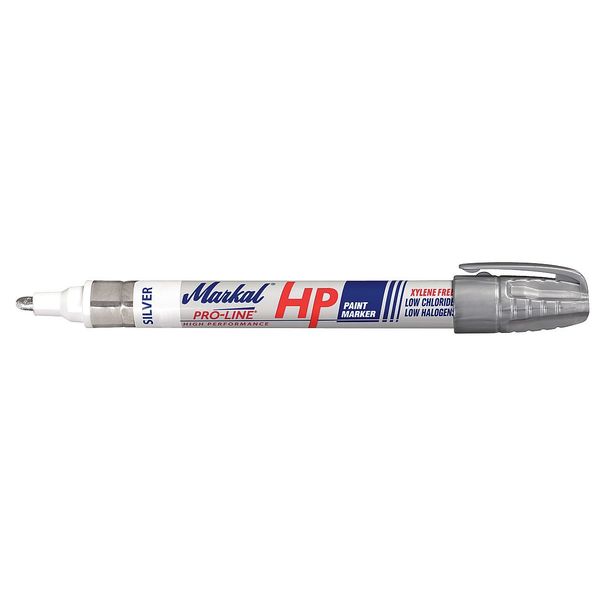$8.94 / eachWeb pricePermanent Liquid Paint Marker, Medium Tip, Silver Color Family, PaintSKU G5377041Categories Paint and Body EquipmentDescription Paint Marker, Actuation Type Capillary, Compatible Surfaces Aluminum, Iron, Plastic, Rubber, Steel, Dry Time 30 sec, GE Nuclear and Aircraft Engine Specification Compliance Not Applicable, Housing Attachment Style Clip, Housing Material Metal, Includes Not Applicable, Marking Tip Shape Bullet, Maximum Application Temperature 150 Degrees F, Maximum Performance Temperature 150 Degrees F, MIL Spec STD-2041D Compliance No, Minimum Application Temperature -50 Degrees FgraingerSKU: 23YT66, mscSKU: 43475102, zoro_no: G5377041, mongo_id: 65bbe7073aaddbd5a906c45a
