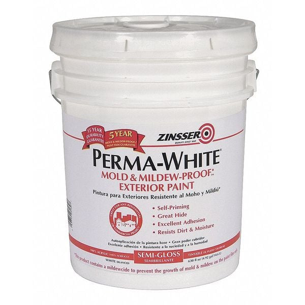 $327.49 / eachWeb priceInterior/Exterior Paint, Satin, Water Base, White, 5 galSKU G2997565Categories Paint and Body EquipmentDescription Interior/Exterior Paint, For Use On Surface Material Metal, Wood, Paint Base Type Water, Paint Color Family Whites, White, Finish Satin, Size 5 gal, Coverage 300 to 400 sq ft/gal, VOC Content Less Than 150g/L, Dry Time Recoat 2 hr, Dry Time 30 min, Application Method Brush, Roll, Spray, Features Mold and Mildew PreventativegraingerSKU: 4FZX7, mscSKU: , zoro_no: G2997565, mongo_id: 65bbe90e22d7a989a9931562