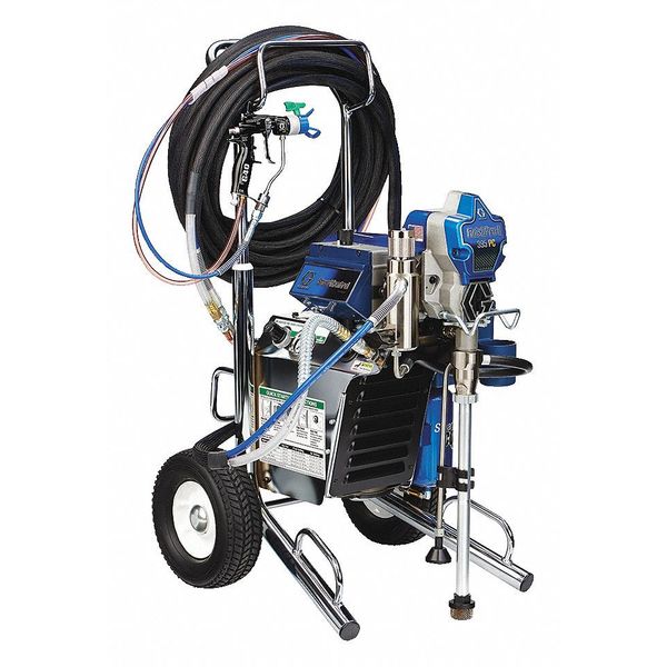 $5,593.74 / eachWeb priceAirless Paint Sprayer, Cart, 0.43 gpmSKU G9967343Categories Paint and Body EquipmentDescription Airless Paint Sprayer, Cart Style, 7/8 hp HP, Flow Rate 0.43 gpm, Voltage 115V AC, Amps AC 15 A, Operating Pressure 3,300 psi, Guns Supported 1, Tip Size Included 0.017 in, Max. Tip Size 0.021 in, Hose Length 50 ft, Max. Hose Length 200 ft, Height 40 1/2 in, Length 32 1/2 in, Width 21 in, For Use With One or Five Gallon Bucket, Includes Gun, Hose, TipgraingerSKU: 39AM07, mscSKU: , zoro_no: G9967343, mongo_id: 65bbe7a79a749db82274dc23